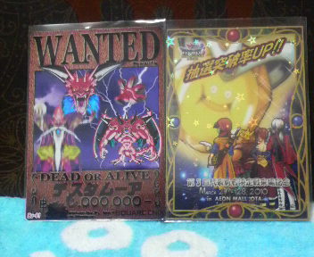 こんばんは~、ばっちょです。 今日はAMに無制限ペア、PMに小学生以下のペア戦がありました。簡単に結果のご報告こう書くと結果は分かっちゃいますが・・・AMの無制限ペアエントリー数が43組番号カスることもなく漏れ~PMの小学生以下ペアエントリー数は26組こちらはカスったものの結局呼ばれず~漏れ~ 何とか今日は当選して、再度デッキの調子を確認しようと思ったのですがダメでしたね~それには原因が・・・?! 乱対しようとした1クレ目に・・・ パペットこぞう正直1/800は嬉しいのですが、抽選前に排出してしまっただけに心境は複雑でしたよ あとお仲間さんから、チャームを交換して頂きまして無事チャームの方もコンプ出来ました皆さん、ご協力頂きましてありがとうございました~ さ~て、代表勇者決定戦まで残りわずかとなりましたが、平日に乱対でもして感覚を忘れないようにしておかないとね ではっ