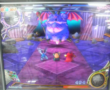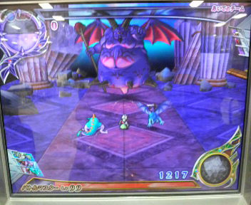 こんばんは~、ばっちょです。 今日は何とか仕事が早めに終わることが出来たので息子を連れてイオンに突撃してきました勿論、懲りずに赤目ドレアム討伐狙いですけどね~けど、何とかプレイは待たずに出来る状況ではあったんですが、ちょこちょことお子様が後ろに並んでしまうので、常に台が空いてるところへ移動しながらプレイしてました。そんなわけで息子と合わせて10プレイ 3クレ目: 白目ラプソーン討伐 6クレ目:白目ラプソーンにつばぜり負け~ 7クレ目: 赤目ラプソーン討伐やっぱり討伐失敗した直後のプレイは大魔王は出やすい 台移動して9クレ目:ここでまたまたドルマゲス登場つばぜりも練習で片手連打したら・・・ 負けた・・・何とかSP光の玉で追いつき、2度目のつばぜりで・・・ 負け~~~!!おいどうなってるのまさか大魔王を拝む前に負けるなんて・・・この時、隣の台で赤目ドレアムが登場してましたが(汗 10クレ目: 赤目ラプソーン討伐これで時間切れ~~~ 結局、赤目ドレアムは目撃しただけで終っちゃいました~なぜ出ない・・・?! ということで、このままでは帰れない(爆と思い、Yパパさんから頂いた情報を元にモーリー内を捜索しかし、もうひとつの目的であったタッチペンさえ見つからず・・・ ますます帰れない・・・(何で) そこでふと目に止まったのはワンピースのクッションということで、お姉さんにおねだりして超~甘設定にしてもらってGET それでも500円も使っちゃいました・・・お姉さんに感謝しつつ、そのまま帰宅となりました~ ではっ