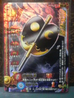 こんばんは~、ばっちょです。 え~ん、記事を書いてたら消えちゃったよけど何とか復旧出来そうですが・・・ さて、先週末に大会に参加してたわけですが、お友達から頂き物があったのでご紹介しますね~土曜日の大会でしゅうぱぱさんにお会いしてまたまた融合武器の新作オリカを頂いちゃいました~ 風林火山マヂウレ━━(*´∀`*b)━━シィ!!!! それも新しいキラ仕様になってるし何でこんなに完成度高く作れるのばっちょには全くもって真似出来ません(爆しゅうぱぱさん、貴重なオリカありがとうございました そして、午前の大会に漏れた後、UFOキャッチャーの中に気になるソフビを発見もうこれは獲るしかないでしょうということで・・・ ゾーマ(メタリック仕様)とくさった死体アームはかなり弱かったのですが、ダメ元で変則技発動(笑で何とか200円でGET十分にお釣りが来ますね~ この日の大会は抽選運はなかったですけど、クレーンゲーム系に運があったようです(汗また見つけたら、獲ってこようっと ではっ