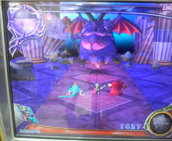 こんばんは~、ばっちょです。 ついに『逆襲の魔王』稼動前日ですね!!(既に当日になってますが・・・) 『怒れる大地』最終日ってことで、行ってきましたよ~近くのお店に聞きまくって、稼動しているところを確認残念ながら、前の章のカードが装填されてましたが、ばっちょはカード目的じゃなかったので、全然OKですね~ ということで、 ゾーマ討伐!! デスピサロ討伐!! はっはっは~、レジェンドクエストをプレイしてましたばっちょの書を確認したら、「3」もクリアしてなかったので、一気にクエストをクリアして来ましたよ レジェンドクエスト3EXランクモンマスでプレイしてみたのですが、予想以上にバラモスゾンビの連れ達に削られて失敗したものの、何とか目的達成 レジェンドクエスト4EXランクこちらも難関の章は意外にあっさりと一発クリアけど、魔剣士ピサロに5ターン目にいてつかれたり、思わぬツバ負けで苦戦しましたが、こちらも何とか目的達成 そして、オルゴが解雇処分になる為、大魔王が出てきたらプレイ終了ってことで・・・1クレ目 赤目ダークドレアム!!1ターン目:魔神の絶技2ターン目:いてつくはどう3ターン目:つばぜり勝利4ターン目:魔神の咆哮5ターン目:SPビッグバン ドレアムはダブルギガスロー最終ターン: 赤目ダークドレアム討伐!!残念ながらオルゴさんにはご挨拶出来ませんでしたけど、ドレアムさんも明日からしばらく会えないから上出来ですね 明日の新章稼働日はいつものように仕事終ってから突撃しま~す ではっ