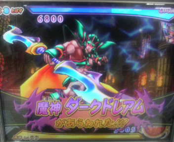 こんばんは~、ばっちょです。 昨日は県内で珍しく地震があったようですが、今日もありましたね~厳密には今日は県内ではなかったのですが、今までほとんど地震の震源地になったこともないようなところで・・・どこで何があるか分からないので、何かあった場合に迅速に対応出来るようにしておかないとね さて、昨日は赤目ドレアムが出現せず、ストレス溜めたプレイになってしまったので、今日も懲りずに行ってきました~しかし、今日は最悪でした・・・合計14プレイ いきなり1クレ目: 赤目ドレアム登場!!ばっちょとしてはやっと2戦目1ターン目:こちら通常攻撃 ドレアムは魔神の絶技2ターン目:こちらは通常攻撃 ドレアムはいてつくはどう おっこれは勝ちパターン 3ターン目:つばぜりあい敢行 ゲージは黄色MAX!!!! いつも以上に連打!連打!連打!連打!連打!連打! しかしまたもや つばぜり負け(汗4ターン目:SP光の玉を挿してゲージを互角に持ち込みます5ターン目:ドレアムのライダーキックにて終了~ 実は4ターン目にこちらが2体動いてから、いてつくはどうされてTHE ENDでした その後のプレイでは白目ラプソーンが出てきましたが、ここでもつばぜり負けて・・・大魔王討伐数ゼロ!!超~グッタリでした・・・ 明日はばっちょ唯一のお休みママさんの用事も兼ねて県外の方に足を運ぶ予定です ではっ