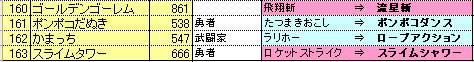こんばんは~、ばっちょです。 ばっちょのDQMJ2の進行状況、プレイ時間やっと10時間超えました現在、海岸でモンスター達をスカウト&討伐中~ さて、今日は簡単更新で ご報告が遅くなりましたが、今章の新モンスターの第3の技です。勿論レンコはしてませんが、新カードの排出状況が良くなく、ゴールデンゴーレムもスライムタワーも排出してません大会や討伐プレイして確認した内容になってますので、あしからず ゴールデンゴーレムの「流星斬」は会心率が高そうですが、ミスも目立つかな・・・ポンポコだぬきの「ポンポコダンス」は呪文耐性の弱化と状態異常を確認してます。 ちなみにゴールデンゴーレムはどの職業で第3の技になるのか確認してませんどなたか分かる方がいましたら、教えて下さ~い 今回、一番使えそうなモンスターはやっぱりスライムタワーかな・・・ ではっ
