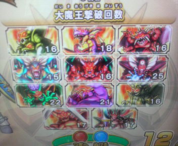 こんばんは~、ばっちょです。 最近の夜な夜なのビクトリープレイと仕事の忙しさと猛暑のせいで、最近ヘバリ気味です ・・・が、そんな状況でもモンバトはちゃんとやってますよ~アーケードの方はプレイ数が減っちゃいましたけどね(汗 最近のばっちょの大魔王討伐記録です。一応、大魔王狩りもやってるんですが、赤目に結構負けちゃって討伐数がほとんど進んでませんよ・・・ 「竜族の勇者」 「竜神王」の称号GET 昨日の記事でもご報告しましたが、レジェンドクエストをクリアすることでビクトリーでの称号が貰えますおしゃれ着はないですけどね この称号、対人戦で「かけだしプレイヤー」などとよく見ますが、これは自身で変更することが可能なので、気が向いたら、是非試してみて下さいねちなみにばっちょは不定期ですが、たま~に変更して楽しんでますよ ではっ