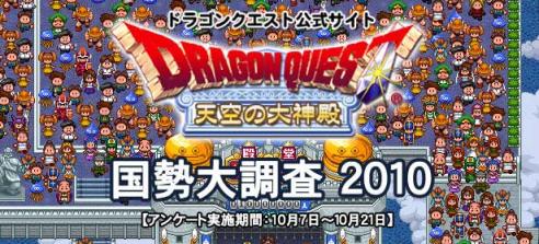 こんばんは~、ばっちょです。 まずは・・・「申し訳ないです!!」 本来なら昨日の続きで更新したかったのですが、かな~り調子悪い PCがだけどね・・・ちょっとメンテナンスしている途中なので、簡単に更新します昨日の★印については何とか明日に結果発表しますので、もうちょっとお待ち下さいコメ返しも遅くなりますので、ご了承下さいませ~ お待ち頂く間にこちらはいかがですか ドラゴンクエスト公式サイト天空の大神殿 国勢大調査2010 ばっちょは一応アンケート応募しておきましたよ自由意見は勿論『モンバト復活!』 ではっ