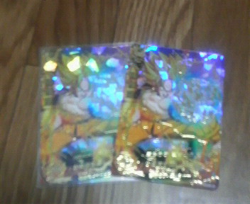 こんばんは~、ばっちょです。 いつもご訪問ありがとうございます ハイ、今日は大会に行って来ましたよ~ と言いたいところですが、残念ながら今日はお仕事・・・ これだから曜日感覚なくなるんだよねぇ(爆因みに昨日は爆睡しておりましたッ まあ愚痴はこれくらいで・・・ さて、皆様はX'masをどうお過ごしだったのでしょうか 我が家では息子に『ぽかぽかアイルー村』をプレゼントしました先日、誕生日に購入していた『モンハンポータブル3rd』と連動が少しあるようなのでこれに決めたようです 更に24日に地元イオンで、The ROOTLESSのライブが!!そう現在TVアニメ『ワンピース』の主題歌を歌っているバンドです息子は叔母さんに連れられてライブを観に行ったようで、ちゃっかり・・・ CDを購入 更に色紙まで・・・CDにも名前入りでサインが入ってます最後にヴォーカルの野畑さんと握手したようで、ばっちょが家に帰ってからもずっと興奮気味でした~ んで、家に着いていつもと変わらぬ感じで晩飯が用意されていく中、ママさんから「そういえば黄色い封筒が届いてるよ~」と「幸せの黄色い封筒!!」 早速、封筒の中を開けてみると URベジータ そして、ワンピーBMWのスーパーカードが送り主は予想通りメタッピー師匠からでしたッ相変わらずサービス満点の心遣いに感謝しておりますこれで、DBHはコンプで~すメタッピー師匠、いつもいつもありがとうございます!!そんなメタッピー師匠のブログはこちら 『メタッピーのひとりごと!?』というわけで、ばっちょ自身にとっても最高のクリスマスプレゼントになりました 日曜日はタイヤ交換などやっておかなければいけないこともあるので、大会参加は未定ですけど、とにかく新しいカードでDBHやワンピーで思いっきり遊びたいですね~ ではっ