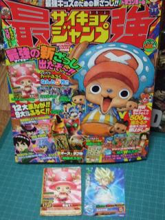 こんばんは~、ばっちょです。 いつもご訪問ありがとうございます え~、心配されていた起床時間ですが、何とかママさんに叩き起こされて、無事に会社に間に合うことが出来ました~危ね、危なねぇ~(汗 会社の方は無難に仕事をこなして、自宅に帰ると 最強ジャンプ欲しかった2枚のプロモカードをGETです次回発売は3月頃とのことで、月刊誌じゃなかったみたいですね~ んで、息子から何気に報告本日のDBHの大会に参加してきたとのこと 結果は1回戦負け息子いはく、「すげ~、緊張しててインパクトがダメだった」らしいです(汗 あっそう~、息子にヌケがけされちゃいました・・・(爆 でもまあ、先着での大会参加だったみたいで目的の参加賞を無事にGETしたのでかな~ 参加賞のカードは全部で16種類とのことで、その中にVジャンにも掲載されていたハッチヒャックが1枚だけ入ってるみたいですよ~誰の手に渡るか運次第?!早くハッチヒャックのカードを手に入れて、遊んでみたいものです ではっ