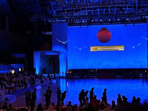 <クラウドファンディング>2025年のWDC世界選手権は『マダム・ロー ダンス グランプリ』の冠がついていました。マダム・ローはフロアに出て、英語と日本語でご挨拶をされていましたが、こういった方々の多大な支援によって大会は成り立っているのだと思います。ゴルフなどのトーナメントでは優勝賞金5千万円とかよく耳にしますが、ダンスはそれほど高くないんですね。今回のプロの世界選手権でも優勝賞金は3百万円です。***************************************************************世界プロフェッショナルダンス選手権(ボールルーム・ラテン共)***************************************************************1 位 賞金300万円2 位 150万円3 位 75万円4 位 50万円 5 位 30万円 6 位 20万円準決勝 10万円 準々決勝 7万円***************************************************************世界選手権を2つですから、賞金だけでも千五百万円。日本インターも世界選手権ほどではありませんが、プロ・アマとも賞金が出ます。こういったビッグ・コンペを開催するには、観客の入場料や選手のエントリー料金くらいでは全然賄えないでしょうから、スポンサーのバックアップが必須になってくると思います。他にも協賛されている会社がいくつかあって、その中の一つの池田社長が世界選手権直前のハーフタイムショーに和太鼓と剣舞のステージを提供されていました。練習場でよくお会いする現役競技ダンサーで、今回私達に特等席をご用意くださった方です。曲目は2日とも同じだったようですが舞は違っていて、1日目は日本刀、2日目は薙刀と日本刀の二人舞でした。世界各国からのお客さんも多く来られていたので、和のパフォーマンスはとても喜ばれたと思います。舞台の両サイドに配置された『舞踏』の書や中央の大提灯、4羽の鶴はアーティストの大谷芳照さんデザインによるものです。3000円で買った豪華なプログラムにもプリントされてましたが、素敵な書です。プログラムには大会役員の名前がずらりと書かれているんですが、以前お世話になっていた師匠が『ディレクター』になられてて、この和を前面に押しだしたアート感覚に納得してしまいました。国歌斉唱は2日とも、去年山梨の団体戦のときに歌われたオペラ歌手の本岩孝之さんでした。ステージのデザインに合わせたのか、金の衣装でゴールデン・ジバングの雰囲気を出しておられましたね。世界選手権の前にプレミアム・デモンストレーションがありました。前の座席の方達が、フロア使用料70万くらいかかるらしいという話をしていました。もちろんそれだけじゃなくて衣装作ったり先生への謝礼とかレッスン料とかもかかるでしょうから、金銭的に余裕がないとできないでしょうね。私も一生に一度くらいはこういったすごい舞台で踊ってみたいなあと大将にいうと、『誰と?』と聞きます。『シュミットさん。』と言うと、バカウケされてしまいました。さて、JBDFでは『賞金総額2,000万円の世界大会を日本で開催したい!』ということで、クラウドファンディングを実施していました。知らない間にもう終わってましたが、世界選手権の特設サイトからリンクが貼られていたようです。集まった金額は127万円程度で2千万円には全然及びませんでしたが、こういった素晴らしい大会を開けるのも、スポンサーや観客の皆さんのご支援あっての賜物だと思います。日本にラテンもボールルームも世界選手権で決勝に入る選手が誕生しましたから、もっと広く多くの方々にダンス競技の面白さを知っていただいて、協賛していただける企業が増えていくといいですね。競技会情報はこちらから