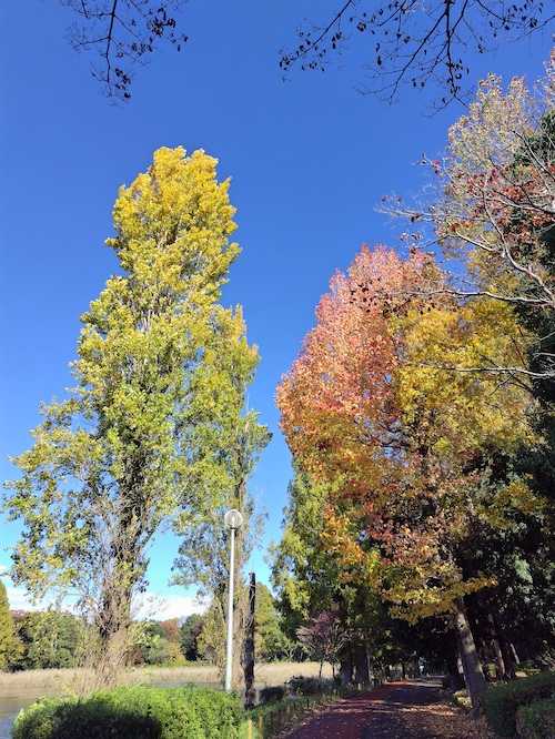 毎日散歩している近所の公園の秋の風景をご紹介します。緑一色だった公園がすっかり色づき、池にはロシアからカモたちが飛来しました。穏やかな秋の晴天、風が少し強めに吹いています。道には色とりどりの落ち葉。水辺のアシも枯葉色になりました。バラもまだ咲いているんですね。ツワブキ(石蕗)という花もたくさん咲いてます。ここを通ると、踏み潰された銀杏の匂いがします。三日前は、二十四節気の立冬でした。銀杏並木はまだ少し緑が残っています。夏の公園 晩秋の公園 冬の公園 春の公園