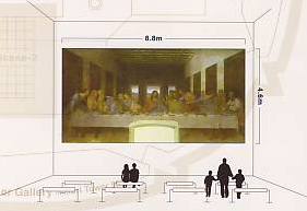 本日から公開の展覧会。どうしようか迷ったのだが、最後の晩餐の原寸大画像が体験できるという誘惑に負けて結局、来てしまいました。それにしても初日、かなりの人で関心の高さをうかがうことができます。内容は、来月末公開の映画のセットのレプリカや小道具の展示。撮影場所の紹介の映像。そして、モナ・リザや2点の岩窟の聖母、洗礼者ヨハネ、東方三博士の礼拝など、あの小説の中に出てくる絵画をデジタルハイビジョン画面で映し出し、小説の中の解釈を紹介する映像など。「まぁこんなものでしょうか」といった感じです。期待のデジタル・シアター、「最後の晩餐」は、タテ4.6×ヨコ8.8メートルの原寸大。さすがにこれは圧巻でした。映像も精緻で臨場感に溢れています。修復前と修復後の違いなど、さすがによく分かりました。展示されていたロバート・ラングドンの本(映画の小道具・著者の写真がトム・ハンクス)を見て、若いカップルが、「この人、実在するんだねぇ~。知らなかった~」と話しているのを聞いて笑ってしまいました。入場料金500円だったらお勧めですが、1,500円ですからね。何とも言えません。