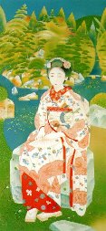 今回の常設展の見どころは何と言っても土田麦僊の「舞妓林泉図(ぶぎりんせんず)」。この作品が展示されるのを心待ちにしていました。この絵が展示される際には、メールで連絡してほしいと、ずいぶん前に、美術館にお願いしてあったので、展示係の方から連絡があったのです。丁寧なサービスでうれしいです。恥ずかしい話ですが、この絵の題名。林泉という名前の舞妓さんの絵であるとばかり思っていました。実際は舞妓と林泉(庭園)の図ということなのですね。最近になって気づきました。さて、この絵。ひとたび眺めると夢の世界に引きずり込まれます。現実にはありえない緑の背景。青い池の水が森になり空に連なります。築山は緑に覆われていますが、よく見ると紅葉している部分もあります。配置されている庭石は赤い石と青い石の二種類です。こちら側の舞妓の足元は緑一色の上に色とりどりのお花畑になっています。京都南禅寺の天授庵を取材したものだそうです。昨秋、南禅寺に行ったとき、天授庵だけ行きそびれてしまったのが残念でした。次回は必ず立ち寄らなくてはと思いました。築山の輪郭の部分がちょうど舞妓さんの首のところにかかって、首が切れているような感じになっているのですが、まったく不自然に感じません。築山が丸いせいでしょうか。麦僊が研究したイタリア・ルネサンスの画家ベルナルディーノ・ルイーニの聖母子像に学んだものということなので、ひょっとしたら築山がニンブス(光輪)に見立てられているのかもしれません。舞妓さんの方はオレンジと白を基調にした振袖姿です。何を考えているのでしょうか、ちょっと物憂げな表情です。東京国立博物館の速水御舟の「京の舞妓」が、徹底したリアリズムで描かれているのに対して、こちらの舞妓は、優れた様式美と色彩の絵です。日本画の女性像の中で一番好きな絵です。この他、今回の常設展で目を引いた作品。跡見玉枝(あとみぎょくし)の桜花図巻。さまざまな桜の花が丹念に描かれた図鑑になっています。洋画では、松本竣介の並木道。緑を基調にした厳しさあふれる風景画です。この絵の道の中に吸い込まれてしまうようです。その他、平山郁夫の「建立金剛心図」や、岩崎巴人の「バケモノ百鬼夜行」など面白かったです。4/11