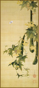 平安神宮横の細見美術館に行く。東京で言えば五島美術館か、根津美術館のような雰囲気の美術館を想像していたので、モダンな建物に少し驚きました。さて、この展覧会。美術館所有作品のリクエスト・ランキング。第一位は、神坂雪佳の「金魚玉図」。あれ、これは先月、日本橋高島屋で出会ったばかり。そういえば、このときの展覧会、ほとんど細見美術館所蔵の作品だったのですね。本家本元に戻ってきたばかりなのです。外は30度超えの猛暑。冷房の効いた館内で涼しげな金魚玉とつりしのぶを観ることのできる幸せ。北斎の肉筆画「五美人図」「夜鷹図」も確か、東博の北斎展で出会ったような記憶がありました。そして、やはりお目当ては若冲です。「糸瓜群虫図」。のちの「池辺群虫図」にも見られるユーモラスな逆さのキリギリスが登場しています。キャプションに11匹の虫が描かれているとあるのですが、どうしても9匹しか見つかりませんでした。「雪中雄鶏図」補修の終わった動植綵絵シリーズの濃密な色彩に見慣れてしまったので、巻き皺の後などが痛々しく、迫力不足と感じてしまうのは何と贅沢なことか。眼が奢りすぎてしまった。ホイップクリームのような雪とキャプションにあったが、竹の葉にへばりつくような不思議な雪でした。「瓢箪・牡丹図」墨のにじみの効果を利用して描いた水墨画。長く伸びた瓢箪がユーモラス。牡丹の花の上の蝶には帰宅して書籍を見直すまで気づきませんでした。「鼠婚礼図」これも水墨画のネズミたち。ネズミの人の顔のように描かれたユーモラスな表情・動作は絵本の挿絵みたいです。その他の画家では、住吉如慶の「きりぎりす絵巻」。先日、大倉集古館で見た「虫太平記」は寄生虫のようで気持ちが悪かったですが、こちらの方は虫たちが着物を着、馬の代わりにカエルに乗っており、ユーモラスでかわいいです。背景の草花も緻密に描かれており、スッキリとした感じがいいです。そして、酒井抱一の水墨画、「白蓮図」。供養のために制作されたとキャプションにありましたが、静謐さのなかに、凛とした力強さを感じさせる一輪の白い蓮の花。祈る時のように心が引き締まる絵でした。