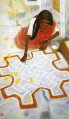 夕方に横須賀で所用があったため、近隣の美術館を探していたところ、ちょうどとらさんのブログを拝見し、朝から出かけることにした。逗子の駅から、バスに乗る。昔ながらの細い道を海の景色を眺めながら行くと20分くらいで、美術館前に着く。海の光景を取り入れた美しい美術館だった。秋野不矩は天竜、今は浜松市に生まれた。連れ合いの実家から天竜川を30分くらい遡ったところに、藤森照信設計の美術館があり、今まで何回か訪ねたことがある。こちらは、緑の山に建ったインドの香りのするステキな美術館である。さて、今回の展覧会。私はインドなぞ訪れたことはないのだが、実際にインドの片田舎の街に迷い込んだような、そして、暑さでぼうっとかすんだ風景を眺めているようなリアルな感覚にどっぷりと浸ることができた。そして、本当に静か。インドって、もっと人々がうごめいていそうな感じなのだが、秋野不矩の描くインドの光景はひたすら静かである。たとえそこに人が描かれていても、彼女は声を発しない。動物が描かれていても、実態のない幻のようである。今回の展覧会では「黄色」の魅力にとりつかれた。黄色い大地、黄色い壁、黄色い回廊、黄色い川、黄色い空・・・・ガンガーと題された絵は2点あった。どちらも聖なる川ガンジス川を渡る水牛の群れ。特に1,999年作の金色に輝くガンジス川は、一度眺めたら目を離すことが出来ない。そこに描かれているのは「永遠」であると感じた。まだ戦前の若い頃に描いた作品も、ああ、伝統的な日本画だと感じられて清々しかった。思いがけず出かけた展覧会で、深い感動を覚えることが出来た。数多く美術館に出かけているが、こんな体験は滅多にない。今年の展覧会の五本の指に入るであろう。目の前に山口蓬春記念館があったのだが、時間の関係で行くのを諦め、横須賀美術館へ向かった。
