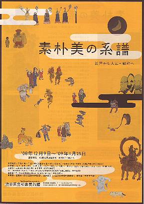 この展覧会、地味ながら隠れた大ヒットである。素朴美とは、写実ではなく、庶民的な味わいのある素朴な絵画とのこと。要するにヘタウマな絵のことだろう。昨年、森美術館の「日本美術が笑う」展や出光美術館の「仙がい」展で、この手の絵の持つ楽しさにすっかり、はまってしまった。今回の展覧会では、仏画から大津絵、そして、江戸時代から昭和初めまでの禅画、水墨画、洋画などを楽しめる。まず初めに、色鮮やかな六道絵が目を惹く。ところが良く見ると亡者の姿など、ほとんどマンガである。白隠や仙がい和尚の禅画はずいぶんと馴染みになった。南天棒の雲水托鉢図も「日本美術が笑う」ではじめて知り、それ以来のお気に入りだ。近代の画家では、小川芋銭、小杉放庵などの日本画。先ほど横浜美術館でみたばかりの森田恒友の日本画もある。セザンヌに影響を受けた洋画家だったはずが、最終的には日本画家になったのだと知る。萬鉄五郎の洋画「宙腰の人」には笑える。中川一政の絵は苦手だったのだが、素朴の系譜に位置づけられると考えると、理解できる。横井弘三の絵をこれだけまとめて見たのははじめだ。童画も楽しいが、例えば油絵の「子供」の泥臭さも不思議な魅力だ。日本のルソーと呼ばれている。夏目漱石の南画があった。漱石の絵を見たのははじめてである。「山上有山図」の青い山が美しい。「こんな夢を見た。」という漱石の声が聞こえてきそうである。1月4日からの後期も大幅な展示替えがあるので、出かけるつもり。