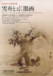 千葉市で地味な水墨画ということで、あまり評判にはならないだろうなと思っていたのだが、予想に反して、すでに多くのブロガーの方が見られており、かなり好評な展覧会。本来は昨年中に見るつもりだったのだが、都合つかず、地元の自分も遅ればせながら、ようやく出かけることができた。水墨画は「水暈墨章画」の略とのこと。はじめて知った。水で薄めた墨の濃淡で描く画法ということだが、水墨画とは何かと突き詰めて考えると難しい。墨だけで描かれた山水や人物などはすぐに水墨画と理解できるが、それに彩色されていたりすると、水墨画と言っていいのかどうか悩んでくる。日本で言えば室町時代の雪舟らは水墨画の画家だとすぐに分かるのだが、狩野派の画家たちや、宗達や応挙や蘆雪、蕭白、若冲らは、水墨画家というのかどうか。たまたま、墨だけで描いたものを水墨画というのであろうか。この展覧会でも、江戸時代の柴田義董や岡本豊彦の絵が水墨画なのかどうか悩む。岡本豊彦の「松鶴波涛図屏風」などは、琳派の絵そのもの。水墨画ではない。日本の水墨画たち―雪舟から武蔵まで―のコーナー。チラシにもなっている雪舟の山水図は、もわっとした感じであまり好みではない。やはり雪舟の作品で好きなのは、秋冬山水図のようにきちっと墨の線が引かれた絵だ。室町時代の屏風「芦鷺柳燕図屏風」には、痺れた。芦や柳の規則正しい並び方をした葉。しなやかに翻って飛ぶツバメ。群れる白鷺。墨は五彩を表すというが、白黒画面なのに、本当に色彩が浮かんでくるよう。宮本武蔵の絵は、余白の多さに剣豪のゆとりを感じる。尾形探香の描いた「宮本武蔵像」。痩せ細った手はとても剣豪のものには見えない。最後のコーナーには、浦上玉堂の大作が数点。2年前にこの美術館で見た浦上玉堂展以来、すっかり気に入った画家である。今回も、つんつん感ともわもわ感がステキ。富岡鉄斎の絵は、よく目にするのだが、面白いなぁと思うものの真剣に意識して見たことがない。今回もさらっと見てもう記憶に残っていない。