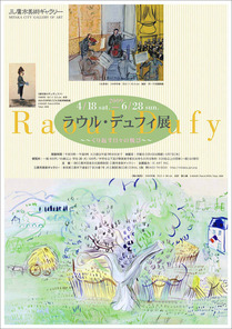 昨年、美の巨人たちでデュフィの1937年のパリ万博に出展された「電気の精」が放映された。今回の展覧会には、晩年に作成したこの作品の350点のリトグラフのうちの一点が、出展されているので楽しみに出かけた。今回の展覧会では初期のルノワール風の絵から、フォービズム、キュビズムを経て、独特の軽やかな線と透明感のある鮮やかな色彩を獲得するまでの軌跡がよく分かった。デュフィは、水彩の薄い透明感のある表現を油絵でも表すことができないかといろいろ考えたそうである。お気に入りは、油彩の「ドーヴィルのレガッタ」。規則正しく並ぶヨット。太いタッチの水面のさまざまなブルーが心地よい。「ボッティチェリによるヴィーナスの誕生」も、神々の持つ青と赤のマントの鮮やかさが印象に残る。やはり、デュフィと言えば、音楽会を描いた絵。軽やかなタッチの線で描かれた演奏家や楽器から、本当に温かみのある音楽が聞こえてきそうな気がする。「バッハへのオマージュ」というミューズが空を飛ぶ素敵な絵があったが、ちょうど音楽の絵を背景に石亀協子という美人ヴァイオリニストのミニコンサートが開かれた。ヴァイオリンは、どうしてこんなに深みのある多様な音が出るのだろうと、じっと指先と弓の動きに見とれていた。演奏後は、デュフィの絵の中の聴衆も温かい拍手を送っているようだった。最後は、「電気の精」。おかざき世界子ども美術博物館が所蔵しているリトグラフ。工場、造船所、発電所、歴史上の学者、神々、自然の光景など、科学と自然との調和を純粋に喜ぶ作品。デュフィが監修して刷ったのだが、この年にデュフィが亡くなっていることを思うと感慨深かった。