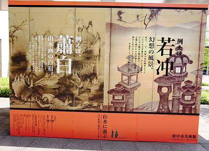 後期は、蘆雪と蕭白の作品を見るのが、最大の目的だったのだが、それ以外にも素敵な絵が多くて、はるばる2時間かけて、府中まで出かけた甲斐があった。前期に見て驚いた墨江武禅の別の絵が出ていた。「錦帯橋図」。この人の墨の陰影で描かれた不思議な世界に引きつけられる。夢の世界だ。「月下山水図」もリストには前期とあるのだが、後期にも展示されていた。司馬江漢もよい。別室の特集展示まで合わせるとかなり多くの作品を見ることができる貴重な機会である。肉筆浮世絵風の「月下柴門美人図」から油絵の「円窓唐美人図」まで、多様な江漢ワールドを味わえる。春信風の浮世絵まであればもっとおもしろかった。そしてお目当ての曽我蕭白。「比叡山図」「山水図」そして、重要文化財の「月夜山水図屏風」がある。特に「月夜山水図屏風」の六曲一双の巨大さには圧倒される。あまりに大きすぎて、全体像が把握できないほど、そこには大パノラマの世界が展開している。肝心のお月さまはどこだ!長澤蘆雪は「赤壁図」と「蓬莱山図」。「赤壁図」は蘇軾の「赤壁の賦」の情景そのままに船が行く。「蓬莱山図」は、鶴と亀が群れをなして、蓬莱山に押し寄せる。鶴には仙人が乗っているのがおかしい。蓬莱山といえば鈴木芙蓉が描いた巨大な亀の背に乗った蓬莱山の絵も面白いものだった。ネットにも館内にも若冲の作品の展示は終わっていると告知されているのだが、それでも私が側聞しただけで、3人の方が係員に若冲の絵はないのかと尋ねていた。改めて若冲の人気を感じた。