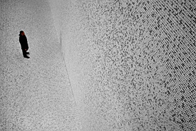 池田亮司という人に全く予備知識もないまま、出かけた。まず、入場すると暗く黒い部屋。いくつかの画面に数字の映像や座標軸の映像、レーダーサイトのような映像など、さまざまな映像が映っている。奥の部屋には巨大なスクリーンに投影されており、それぞれが、鈴の音色のような音とともに動いたりとまったりしている。この人は音楽家でもあるらしい。デジタル映像が音に引っ張られ、ゆがんだり止まったりする。宮島達男の世界に音響がついたような感じである。0と1の間の無限というタイトル。子どもの頃、0の次は、どうして1になることができるのだろう。いつまで経っても1にたどりつかないではないかと悩んだことを思い出す。地下の部屋は上階とは対照的に真っ白な部屋。いくつかある巨大なスピーカーから何やら音が投げだされている。どこかの公園で若者を撃退するのに、若者しか聞こえない音を流すという最近のニュースを思い起こす。しかし、私はこの手の音(とくにキーンという高温)が大の苦手であるので、早々に退散した。小松左京の「果しなき流れの果に」を思い出した。久々に読んでみたくなった。