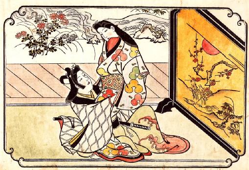 今年も東京国立博物館の正面玄関前の萩が満開となる。砧打つ秋。月下砧打美人図。葛飾応為。摂津国擣衣玉川。礒田湖龍斎筆。