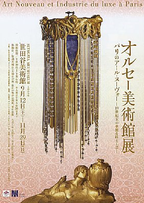 パリのアール・ヌーヴォーと銘打った工芸品の展覧会。アール・ヌーヴォー独特の細く流れるような植物的な装飾を施された家具や宝飾品、食器など。ダイニングルームとか書斎などのコーナーで、大きめな家具などを展示しているので、点数はさほど多くない。だから夢中になって眺めているうちにあっという間に会場出口まで来てしまう。「えっもう終わり?」と少々あっけなさを感じた。七宝のコーナーに、「オルフェウス」を描いた花瓶があった。暗い冥界の山々と炎のように赤く燃える空を背景にエウデリュケを失い嘆くオルフェウス。足元には竪琴が落ちている。何ともドラマチックな題材の花瓶である。ラスター彩という磁器を具体的に知ったのは、今回が初めて。クレマン・マシエの「大皿」。光の移り変わりで、虹色に変化する表面が何とも美しい。金工作品のようであった。その他、スイレンのつぼみに寄り掛かるオフェーリアを表したモーリス・ヴヴァルの「インク壺」も美しい。ラファエル前派の絵を連想する。つぼみがインク壺になっているのだが、その蓋がハエなのが、ポイント。生き物にこだわったアール・ヌーヴォーの感覚だろう。今回は、チケットを頂いたので出かけた。そこそこは楽しめたのだが、世田美というロケーションを考えると自腹ではどうだったかなぁ。