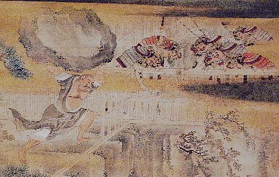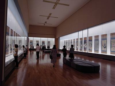 月曜日のブロガープレビューに引き続いて、2回目の名宝展に出かけた。目的は、岩佐又兵衛の小栗判官絵巻と伊藤若冲の動植綵絵を双眼鏡でじっくり味わうこと。出だしが遅くなってしまい、東博に着いたのが9時半を少し過ぎたころ。平成館の前には長蛇の列。早くも入場制限かと思ったが、これは、受付とエスカレーターのところで、流れが遮断されるためにおこる現象。真っ先に第1会場の出口から、小栗判官絵巻の展示ケースに向かう。幸いここには、まだ人が集まっていない。おかげさまで双眼鏡で細部までじっくりと眺めることができた。小栗判官と照手姫のラブストーリー。妻の照手姫の親に毒殺され、冥界に落ちた小栗判官は、閻魔大王の計らいで、餓鬼阿弥というミイラのような姿で娑婆に戻る。一方、照手姫も人買いに売られてしまう。餓鬼阿弥を乗せた車は、次々と多くの人々の手によって東海道を下り、熊野まで運ばれる。この車を引くと功徳があるのだ。偶然、目前に現れた餓鬼阿弥の車を、照手姫は亡き夫とは思わずに五日の間、引いていく。このようにして、熊野まで無事にたどり着いた餓鬼阿弥は、熊野の温泉につかって、小栗として復活し、照手姫と再び結ばれるのであった。第一巻の小栗誕生のシーン。御殿の描写の細密さにほれぼれとしてしまう。あの小さな絵巻に描かれた人々の着物の模様のひとつひとつ、御馳走のひとつひとつ、木々の葉の一枚一枚、建物の扉の升目、屏風に描かれた絵など、どこもしっかりと描き込んでいるのが、双眼鏡でのぞくとよく分かる。第十一巻のユーモラスな閻魔大王には愛着を覚えるし、第十三巻の白拍子に扮した照手姫が、ミイラの餓鬼阿弥の車を押す場面は、人々の躍動感にあふれた動作がドラマチックである。人々の顔の表情も実に生き生きしている。このスペースはただでさえ狭いところをこの絵巻で区切ってしまっているので、1時間後には大混雑となっていた。抱一の花鳥十二カ月図を眺める余裕がなくなってしまった。若冲の動植綵絵のコーナーも既に列が何重にもできていた。係員が最前列の方は止まらずに移動しながら眺めてくれと何度も繰り返す。列の後ろから、双眼鏡でじっくりと観察する。さすがに旭日鳳凰図と動植綵絵30幅を双眼鏡で眺めた後は、目まいがして、しばらく中央のソファーに座り込んでしまった。ここにソファーがあるのは本当にありがたい。動植綵絵はその時の気分で、見るたびに印象が変わっていくのだが、今回のマイベストは「雪中鴛鴦図」としたい。雪に凍える木の枝が突き刺さる様な寒さを感じさせる。さらに胡粉が盛り上がった雪が、追い打ちをかける。そこに凛とした鴛鴦が立つ美しさ。白い雪と赤い花のアクセントも清々しい。第2会場の方は、ゆとりがある。大きな屏風や、360度まわって見ることができる工芸品の展示が多いせいだろう。ここは軽く流して、常設展へ向かおう出口に向かったところで、あおひーさんと出会った。連日の東博通いとのこと。