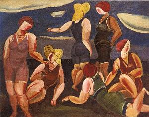 常設展の作品の配置をちょこっと動かして、海をテーマにした作品を集めた展覧会。この美術館はこういう手法がうまい。おまけに気持ちの良い冊子をつけてくれるし、ぐるっとパスで無料で入ったのに申し訳ない限り。まぁ、自分が美術館というところに、はじめて来たのがここだった。もう35年も昔の話。その時、あまりの美しさに感動した「黄昏、ヴェネツィア」が、今も変わらずに展示されているのが嬉しい。今回は、古賀春江が3点、展示されていた。この画家が描く海の絵も多いが、近代美術館の「海」でもあれば、よりテーマに沿ったものだったのになぁと思いながら眺めた。古賀春江が男だったと知ったのは、いつだったろうか。大学生のころ、知ったかぶりをして、仲間にこの画家は女だと説明した記憶がある。「海水浴の女」は、キュビズム風に描かれた女性たち。丸い手足はキリコのマネキン人形のようでもある。日本の匂いも感じるが、外国のようでもある。「涯しなき逃避」は、得意の抽象画。「感傷の静脈」もなにやら不思議な抽象画。また、どこかで古賀春江展を開催してもらいたいものである。