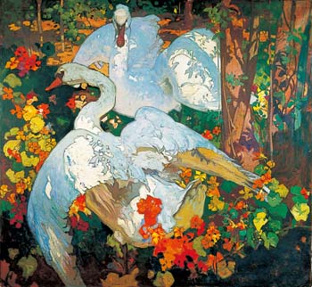 最近、私事多忙ですっかり、美術館めぐりもご無沙汰。この展覧会も先週見たもの。記憶を頼りにメモする。だいたい、この画家自体、はじめて名前を聞く人。松方コレクションとの関連もはじめて知った次第。第一印象は、とっつきにくい油絵だなぁということ。どうも絵の構成が、頭の中にすんなり入ってこない。モザイクか、タペストリーを見るような感じと言っていいかもしれない。抽象画とも違うのだけれども、私の頭の中では一瞬、うまく画面が認識できない作品が多かった。しかし、この画風に慣れてくると、にわかにエキサイティングになってくる。「白鳥」は、この画家の美の頂点のように思える、詩情あふれる名品だ。「海賊バカニーア」の強烈な赤い旗に打ちのめされた。ピンボケのようでもあるし、よく見ると腕の刺青など、細部までしっかりと描かれていたりする。カンディンスキーがこの絵の影響を受けたとか、この絵が展示された時の盛大な反響とか、ドラマチックな作品でもある。一転、版画は分かりやすい作品が多く、混乱した頭を整理するのに役立った。そのあと、常設展の水彩・素描展で、モローの「聖なる象」の前で恍惚感に浸り、夢心地で帰宅した。