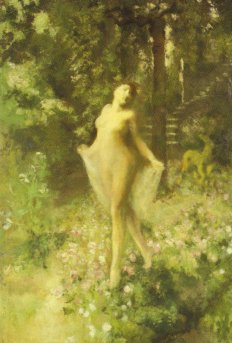 梅雨空の湿った空気は不快だが、逆に庭園美術館の木々は緑が鮮やかで光り輝いて美しい。一歩、洋館の中に入ると、ひんやりとした清々しさが漂う。冷房のありがたさを感じるのだが、もうひとつは、有元の絵が醸し出す雰囲気のおかげでもあると思う。私は、毎年2月末の有元の命日前後に、三番町の小川美術館(弥生画廊)で開かれる有元の展覧会に出かけている。美術館からお知らせの絵ハガキが届く。ただ残念なことに今年は行きそびれてしまったので、この展覧会はグッドタイミング。小川美術館も、重厚なドアをくぐり、暗い廊下を経て、辿り着く展示スペースは胎内めぐりか洞窟を思わせる。この空間は有元の絵にピッタリな趣であるのだが、今回の庭園美術館も絵に描かれたひとりひとりの人物が、まるでこの洋館の住人で、我々を出迎えてくれるように感じられる。そう、この雰囲気は2年前の舟越桂の「夏の邸宅」と同じである。外光を遮ったほの暗いエントランスにいきなり、有元のしっくいのようなフレスコ画が現れる。あの螺旋階段を昇る女性を描いた「花降る日」という絵だ。舞い落ちる花びらが、散華のようで美しい。振り返ると、天にかけられたような黄色いはしごを登る人物を描いた「厳格なカノン」がある。空の白い雲の形がおもしろい。次の部屋には藝大の卒業制作「私にとってのピエロ・デラ・フランチェスカ」がある。派手な色遣いとまだまだ堅い人物である。その後、年を追うに従って、だんだんと柔らかく、浮遊・飛翔する人々の作品が登場してくる。画面には曙光が差し、花々が散り始める。この頃の明るい色遣いの作品が好きだ。80年代になると、病気との闘いもあったのだろうか、画面も暗い色調が中心になってくる。最後の大作、「出現」は山越阿弥陀図に通じるという説があるが、なるほど、有元は自分の死期を予測して描いたのかもしれないと思った。しかし、生まれたばかりの子どもを残して38歳という若さでの夭逝は、さぞ無念であったことだろう。私が有元の絵を知ったのは、宮本輝の小説のカバー絵にも使われ始めた頃で、すでに有元の死後であった。その後、東京ステーションギャラリーの展覧会で、はじめて実物の絵を見たことを思い出した。それ以来の有元ファンであるが、今回の庭園美術館での展覧会は素晴らしい環境の中でまとまった作品を見ることができ、今年の夏いちばんの思い出となりそう。