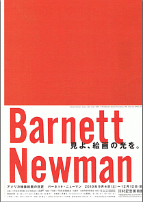 川村のバーネット・ニューマン展に行く。連休初日は日中、また夏が戻ってきたかのような日差し。川村の気温は30度を超えていた。到着後、すぐに階段を上り、ニューマン展を見に行く。まずは「存在せよ1」がある。茶色の地に白い一本の線。この線をジップといい、ニューマンが辿り着いた絵画の至高の表現。どこが、すごいのか?と思うのだが、絵を見て、そういうことを思わせるところがすごいという逆説的な考え方。我思う故に我ありということなんだろう。ジップにたどり着く以前の抽象絵画。「異教的空虚」の方が、もわもわ感にあふれ、抽象画ぽくて、混沌としている。ジップに至ってからは、どの作品もキリっとして厳粛である。タイトルも「夜の女王」とか「原初の光」とか、かっこいいものが多い。「アンナの光」もこちらの会場に移され、ニューマン・ルームは閉鎖されていた。階下のロスコー・ルームは、相変わらず、茶色に染まった独自の雰囲気であった。二人はほとんど同時代の画家で、亡くなった年も同じ。見るときの体調にもよるが、今回はもわもわ感にあふれたロスコーの方がしっくりした。ニューマンは、それに比べると、あまりにも厳しく、鋭敏すぎる気がした。