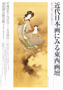 東京は粋、京は雅、大阪は婀娜(あだ)と言われ、それぞれの文化風土があるとのこと。近代日本画で、それぞれの特色を見ていこうとする展覧会である。正直、私の能力では、この展覧会に出展されているそれぞれの画家たちの絵の風土的違いを把握はできない。ただ、言われてみれば何となくそんな気がするという程度である。まずは、東京の画壇のコーナーでは、小林古径の「人形」が印象に残る。黒々としたドレスに小さな白い顔と白い手の対象が際立つ。最初は西洋画課と思った。黒いドレスはよく見ると、墨の濃淡、滲みを上手く利用して模様が描かれているのが凄い。京都の富岡鉄斎の絵は、自由奔放、大胆で好きだが、どうして、これが「雅」に分類されるのかがよく分からない。となりの木島桜谷の「秋草図」の方が、琳派調の作風で、まさに「雅」にぴったりである。大阪の婀娜(あだ)は、艶めかしいという意味だろうが、これもピンとこない。上島鳳山の「十二月美人」は、確かに素晴らしい。8月の?娥はチラシになっている。芳年の月百姿の「嫦娥奔月」で知った画題。色っぽさより、清楚さを感じてしまうのだが、どうだろうか。やはり、各都市の風土の特色と絵の関係については、はっきり分からなかったが、それぞれの絵を楽しむことはできた。