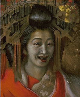 古賀春江。中学生の時、美術の教科書で有名な「海」を見て、強烈な印象を持った画家である。その後、シュルレアリスム、メルヘンタッチの絵画、キュビズム調の絵画など、彼の多様な絵を知り、その都度、古賀春江の名前がインプットされ、いつしかお気に入りの画家のひとりとなった。同行のY嬢は一週間前にはじめて男だと知ったと言っていたが、私も当初は女性だとばかり思っていた。ちなみに奥方は古賀好江という。古賀の画風は大きく変貌していく。初期の水彩画の時代。キュビズム風の時代。土俗的な作風の絵。童話風の絵画の時代。海に見られるようなモンタージュの絵。そして、シュルレアリスム。誰の影響を受けているか推測できる絵も多い。この展覧会でもその過程を追いかけている。この展覧会も、この流れに沿って構成されている。初期の水彩画は、私には印象が薄いが、やはりこの画家を意識するのは、キュビズムがかった絵を描き始めてからだ。東近美の「観音」では、キュビズムの構成が幻想的な雰囲気を盛り上げている。死産した我が子の埋葬を描いた作品は、かなり土俗的な雰囲気。僧侶の紅い袈裟が鮮烈。小坊主や少女の姿が子どもへの愛着を訴える。クレーの影響を受けた作品も多くある。油絵のメルヘン調の絵は、どれも楽しくもあり、一方、もの哀しくもある。画集で眺めていた石橋美術館の「孤独な月夜」を見ることができて嬉しい。犬にフクロウに満月。赤いテーブルクロス。そして墜落する飛行機・・・描かれている対象はまったく関連かない。これも夢の世界。シュルレアリスムの作品は、まず、「海」に代表されるモンタージュ手法の絵がある。カンディンスキーやミロの絵を連想する奇妙な生き物を描いた作品もある。私が好きなのは、最晩年の大原美術館像の「深海の情景」である。この当時、古賀は梅毒で脳を侵され、絵は描けるが、字を書くことができずサインは友人の代筆であるとのこと。暗い海に白い猫面の女がまばゆい。福岡大学蔵の「孔雀」。これには驚いた。日本画とも見間違えるような鮮やかな羽を広げた孔雀の絵。シュルレアリスムから転じてこのような作風も視野に入れていたのだろうか。「世界精神の糸目を縫ふ新しい神話がはじまる」と謳った画家の夭逝が惜しまれてならない。