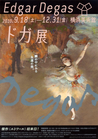 ドガというと真っ先に思い浮かべるのは「踊り子」の絵。そして、踊り子というと「エトワール」。この展覧会でもこの一点は独立したコーナーに展示されている。この「エトワール」は、やはりこの展覧会の中でもひと際、光彩を放っていた。実際、照明の関係かもしれないが、絵画の裏側からバックライトが当たっているように感じられた。見事な光の表現に感激。重厚な油絵ではなく、パステルの軽やかな筆触で、今まさに踊り子が舞台に飛び出していくその一瞬が、ものの見事にとらえられている。美しい踊り子の姿に見とれているうちに気づくのが、背後に見える顔の隠れた黒服の男。この踊り子のパトロンである。当時のバレエ業界の内幕が垣間見える。これは、中野京子の「怖い絵」に詳しい。踊り子は、日本でいえば、さしづめ吉原の太夫というところだろうか。踊り子の表情。ステージで踊るひと時だけ、男から逃れた解放感に酔っているのか、それとも逆に男に媚を売っているのか、それとも舞台を支配するエトワールの誇りと自信なのか。それはこの絵からは分からなかった。この展覧会。他にバレエの授業」はあったのが、ドガの代名詞の踊り子の絵がもう少しあればよかったのにと思う。ドガのブロンズ作品が多数展示されていた。今までも、ドガの彫刻をあちこちの展覧会や美術館で見たことがあるのだが、生前、発表した彫刻作品は、この展覧会にも出展されている「14歳の小さな踊り子」だけだと知って驚いた。晩年、たくさん作っていたのは、視力の衰えたドガが、デッサンの代わりに作っていたものであるそう。そんな事実もはじめて知った。