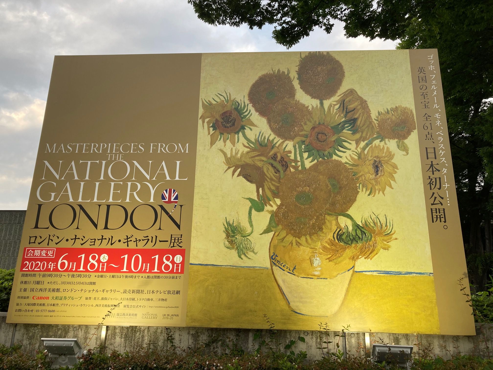 先週土曜日の前売券・招待券限定入場期間に出かけてきました。開幕を視ずに終わってしまうのかと危惧しましたが、期間も延長になりチケットが無駄にならずにほっとしました。整理券の入場時間は、到着時間の3時間後。運よく東博の当日期日指定券があったので、東博で時間をつぶしたのですが、後で西美の常設展を見てればよかったのだと気づきました。てっきり時間まで入館できないと思っていたのが大失敗。ちょうど新潮新書の「美術展の不都合な真実」を読んだばかりだったので、チラシを確認すると主催が国立西洋美術館、ロンドンナショナルギャラリー、読売新聞社と日本テレビ放送網となっていました。「〇〇美術館展」の典型的なパターン。この本によると典型的な大量動員詰込み型の展覧会ですが、このコロナ禍で日時指定の入場方式となったものです。検温と手指消毒を実施後、入場。密集を避けなければならないので、極端な詰込みはなかっのですが、それでも1メートルの距離を取るのは不可能。この先、日時指定制として、収益とのバランスをどうとっていくのか興味津々です。もともとのお目当ては、ゴッホの「ひまわり」と、フェルメールの「ヴァージナルの前に座る若い女性」、そして新聞の記事になっていたカルロ・クリヴェッリの 「聖エミディウスを伴う受胎告知」の3点です。まずは「聖エミディウスを伴う受胎告知」。とにかく厳密な遠近法で構成された四角四面の世界。そして細部まで綿密に描かれた詳細な筆致には驚くばかり。天の裂け目から壁の穴を通ってマリアまで到達する一筋の黄金の光。思いっきり遠近法を無視した不思議な光。これはじっと眺めていても見飽きません。オランダ絵画のコーナーでは、フェルメール「ヴァージナルの前に座る若い女性」。フェルメールの前がガラガラという驚くべき一瞬があったのにはびっくり。まぁ稀少価値があるということでじっくり眺めましたが、もしフェルメールと知らなければ、その他風俗画の一枚だと思って、あっさりと通り過ぎてしまったかと思います。そして大トリは、ゴッホの「ひまわり」。展示パネルで知ったのですが、損保ジャパンにあるものと、まったく同じ構図。こちらの方がオリジナル。ゴーギャンの寝室を飾るために描かれたという背景を知れば知るほど、心に迫ってくるものがあります。そのほか、エル・グレコのドングリマナコのキリストが描かれている「神殿から商人を追い払うキリスト」。ターナーの壮大な「ポリュフェモスを嘲るオデュッセウス」などが印象に残りました。