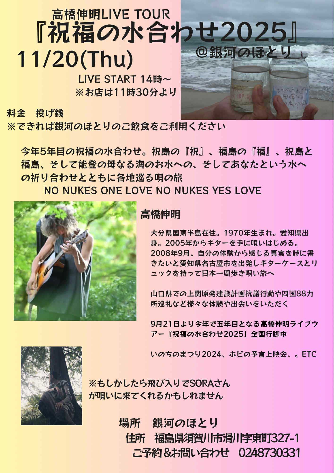 2025.11.25銀河のほとりで高橋伸明ライブツアー『祝福の水合わせ2025』今年も、高橋伸明…