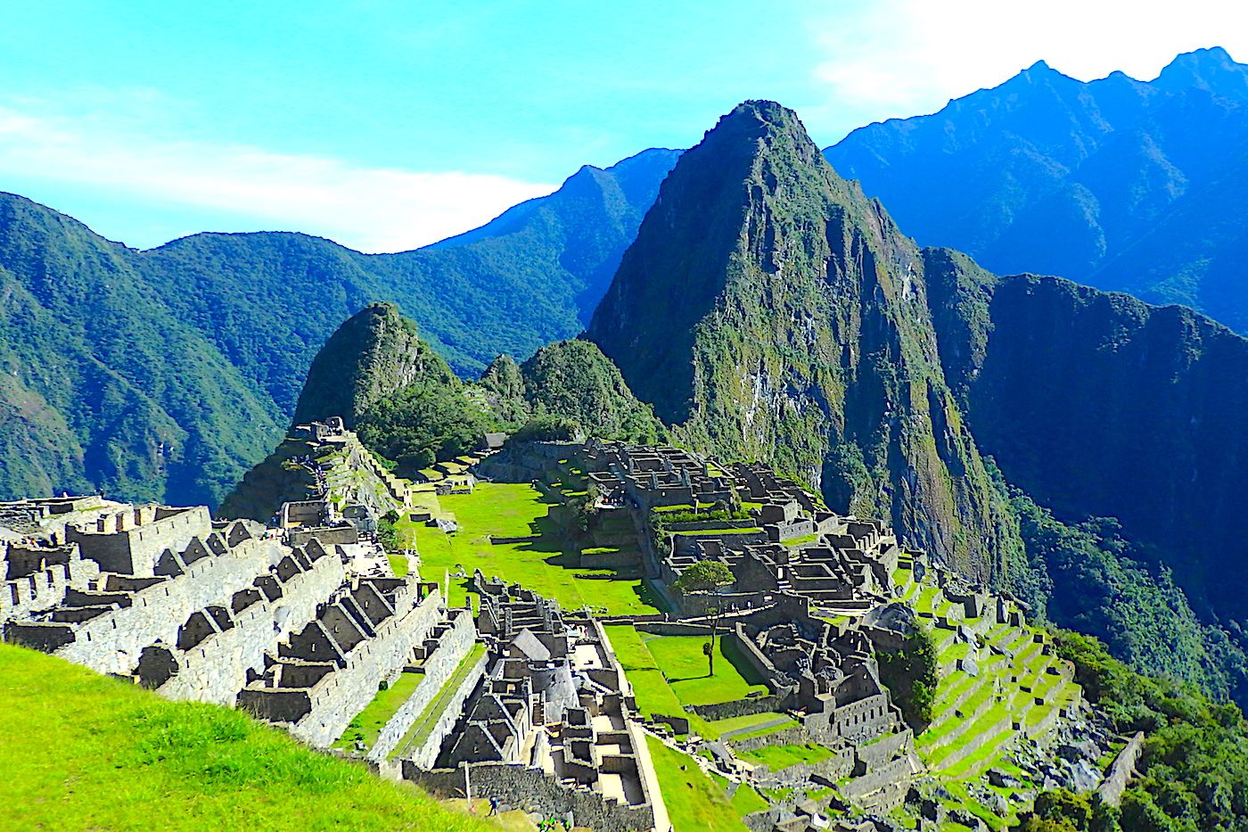 マチュピチュに帰って来ました! 最高の天候に恵まれて、マチュピチュへのバスを降りて歩いて上がると、目の前にはこんなに美しいマチュピチュが♬ 場合によっては、この美しい光景が雲の中に隠れていることもあり、晴れるのをずっと待ったこともあるんですよ。 今回は、晴天で綺麗にくっきりと眺めることが出来ました。