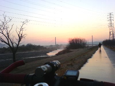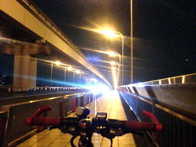 今日は仕事始めです~♪天気も良く気持ちよく通勤出来ました。少し仕事が早く終わったので・・・・もちろん、帰りは、正月中温存した体力にまかして(笑)多摩サイ経由で帰りました、橋を渡る所です、真っ暗なのでこんな所で撮影(笑)いや^^R3はホントに良く走ってくれる頼もしい奴ですとつくづく自転車に頬ずりするこの頃です?(^ー^; )ホオズリハウソデショ