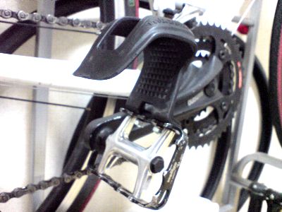 今日は絶好のサイクリング日和でしたが夜まで用事があって暗くなってから無理やりトゥクリップの乗り味を確かめにっ♪ううっなかなか上手く靴が入らずにあせあせっ!!(ださっ)(笑)裏側のペダルで回しちゃってトゥクリップを路面に擦ってしまったりもしました(ださださ)(笑)でもちゃんと靴がはまると「おおっ!!」こりゃ~イイっ!なんというかペダルと足に一体感が生まれると言った感じでしょうか!?!?そのまま、百草園坂を目指します(笑)おおっ相変わらずキツイ自然と前輪が浮くっでも確実にトゥクリップの効果ありです引き足にもペダルがついてくるようですネ。こうなるとメチャメチャSPDも欲しくなってきますな(笑)もっと早く付ければ良かった