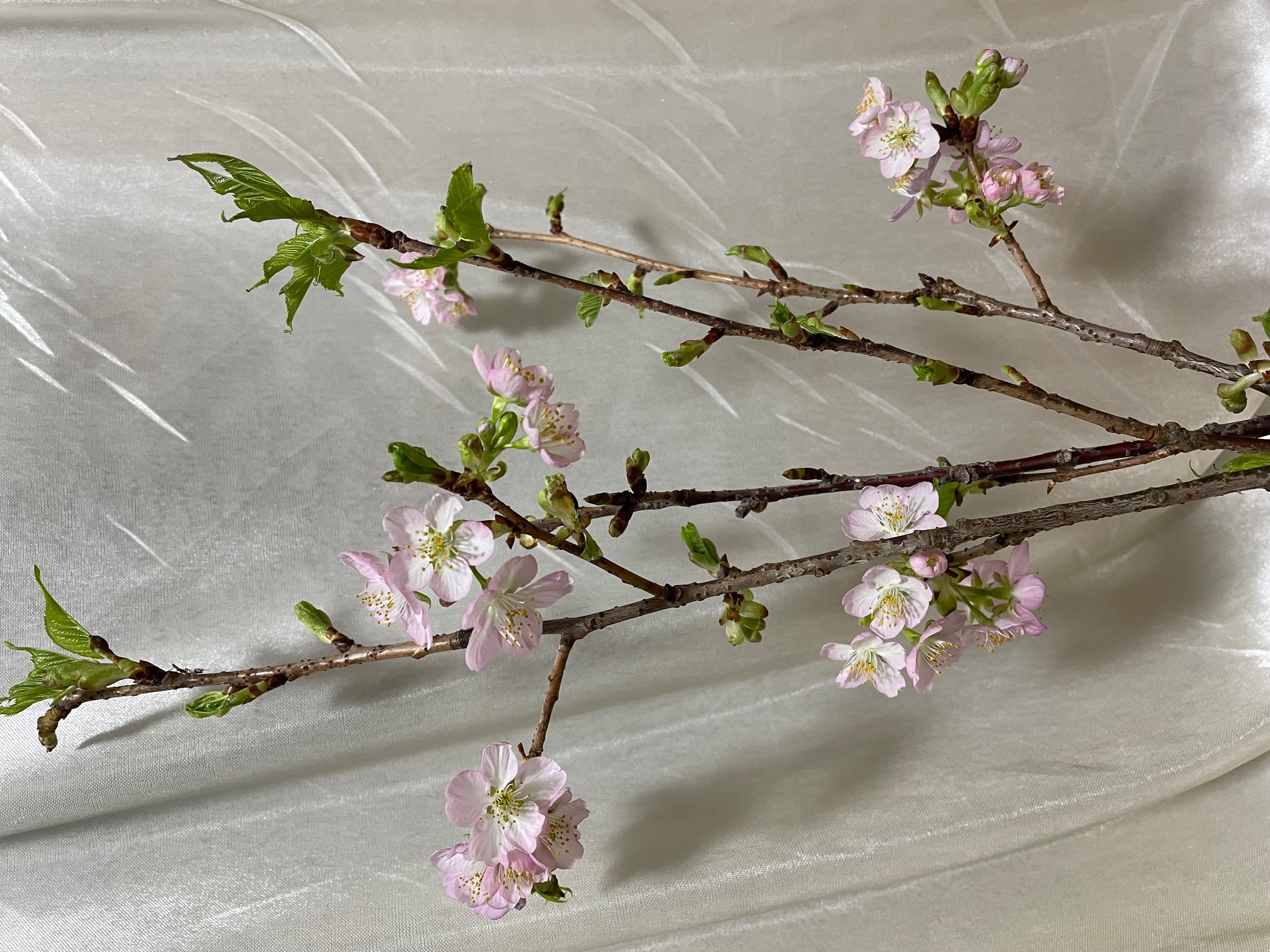 毎年この時期になると実家の父が送ってくれる、一枝の河津桜。おそらく実家の山に植えてあるもの。数日、花びんに活けておいたところ、咲きました。届いた日は、まだピンク色の部分なんかどこにも見えてなかったのに数日でこんな風に咲いて、少しびっくり。しばらくは気持ちだけでも春の気配が楽しめそう。