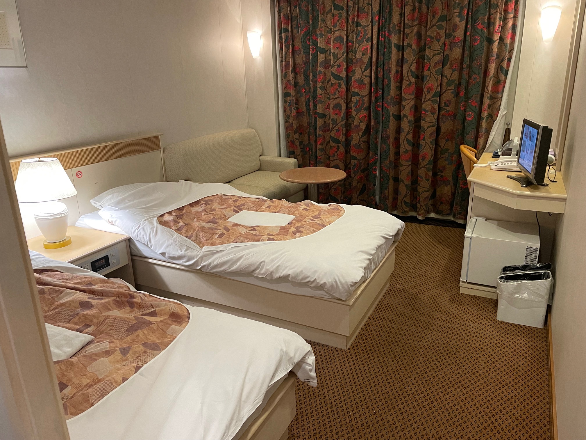 下船して、苫小牧東港ターミナルでしばらく待つ。待ってる間に自販機で飲み物を買おうとしたんだけど出てこずスタッフさんに言って返金してもらうというミニトラブルもありつつ読書しながら2時間ちょっとそのまま待つ。時間になり、再び乗船!今回は、北海道の地にはほとんど上陸せずさっき乗ってきたフェリーにまた乗る、というすっごく久しぶりの暴挙(笑)今度はバストイレ付きの個室。(でも結局、ほぼずっと船酔いのため 部屋の浴槽でお風呂に入ることもできず 昼間に窓を開けてテラスに出て景色を楽しむこともできず。 窓を開けて外の風に当たり船酔いを軽くさせようとはしたけど それもほとんど効果なく。 船酔いで、すぐに横になりたいため 部屋の外に歩いていくことなくトイレがあったのはやはりよかった)体調が悪くなった時のことなどを考えるとやっぱりバストイレ付きの方が断然便利だし気楽。この日はすぐに大浴場へ行き、さっぱりしてから部屋でゆっくりする。さっき売店で買ったマルセイのバターケーキをつまみにお酒を飲み北海道限定の番茶も飲みながらTVを見ながら荷物を整理。今度こそ朝食はレストランで食べるぞと思いながら1時過ぎに就寝。(続きます)