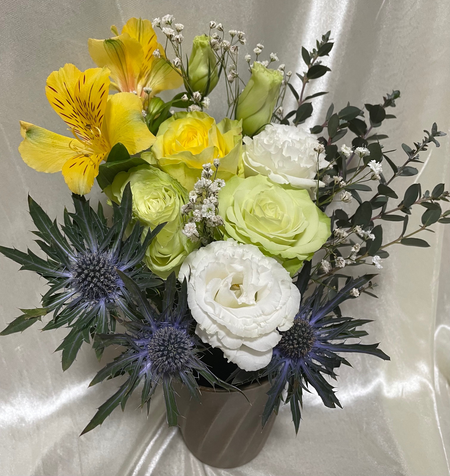 久々に、いただいたお花ではなく自分で(自己流ですが)アレンジしたお花。マグカップにオアシスを入れてアレンジしてます笑ライトグリーンのバラ、もう1本ほしかったかなー。カスミ草ももう少し入れてもよかったんだけどあんまりギュウギュウにしてもね、と思い。2週間ほど前にいただいたお花は傷んだものを取り除きつつもまだ楽しめている。大小合わせて、お花のアレンジが今4つ。ありがたい。