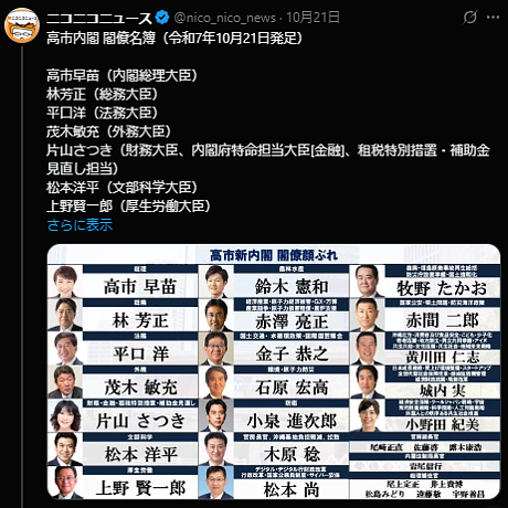 高市早苗総理の閣僚人事が明らかになりましたが、もちろん満点ではありません。 しかし、これまでの悪夢のような政権よりは、きっと日本国民に希望と勇気を与える事になると思います。 "日本の時" を止めた罪人「岸田~石破政権」 。