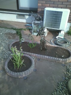 alexの学級閉鎖によって、突如おとずれたパパの夏休みも、今日が最終日。次の作業は週末になってしまうので、とりあえず今日で一区切りつけないといけません。で、ここへ引っ越してきてすぐ、西側にデデーンと作った花壇を、思い切ってリニューアルしました。今までは、この花壇ブロック全部を使って、大きな花壇になっていたんですが、それをオーバル形と小さい円と、2つに分けてみました。小さい円の方は、ギボウシ、オーバルの方は、左から、ペピーノ、ラナンキュラス、菊、秋明菊、そして、一番右には、水仙が9つ植わってます。もちろん、花壇の周りには、お気に入りの防草シート「ザバーン」を敷きました。門から入ってきた風景が、すごくスッキリ見えるようになって、とっても気持ちいいですとりあえず、これで西側は終了でしょうか。花増やす、とか、空いてる部分にガーデンライト、とか、ま、それはおいおい、という感じで。