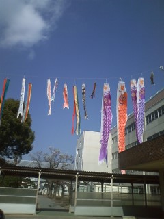 CATVのオプションチャンネルが、12時間、無料開放していたので、「フジテレビNEXT」で、F1のマレーシアGPを観戦しました。天気の影響で、予選は大荒れ。ハミルトン、バトン、アロンソ、マッサといった面々が下位グリッドに沈みました。決勝でも、なかなか上位までには追い付かず、ベッテル&ウェーバーのRedBullの1-2そんなレース内容よりも、何が楽しかったか、って、解説ですよ。「フジテレビNEXT」は、今宮さん&川井ちゃんですもん。セナ、プロスト、マンセル、ベルガー、という90年代前半に、一番F1にのめりこんでいた人間としては、当時、地上波で解説やリポートをしていた、この二人のコンビは最強ですCS放送のオプションチャンネルゆえ、地上波みたいに、F1を知らない人にもわかるように説明する、とかしなくていいんでしょう、専門用語がカンガン出てくるし、川井ちゃんは、細かいところツッこんでくるし、「かゆいところに手が届きまくり」な解説で、心地いいことこの上ありませんでした昨日のブログにupし忘れた画像。alexの卒業した小学校で泳いでいた、鯉のぼりです。第一校舎と第二校舎の屋上同士にロープ渡してあります。