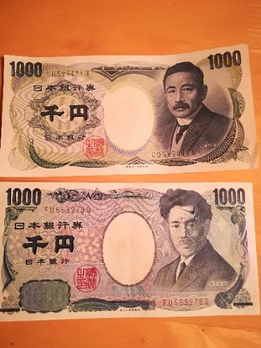 日記、と言っておきながら、数日前のことを記事にすることをお許しください。スーパーで買い物して、お釣りをもらったら、千円札が、野口英世と夏目漱石、で。 変更になった時、それほど違和感はおぼえなかったのだけれど、こうして、久々に並んでみてみると、全然印象が違う。レジの店員さんも、私も、思わず、二度見三度見してしまったほど。一瞬、偽札?とさえ思ったり。で、夏目漱石札は、ちょっと使えなくて、お財布の中で、別スペースに入れてる、っていう(笑)。