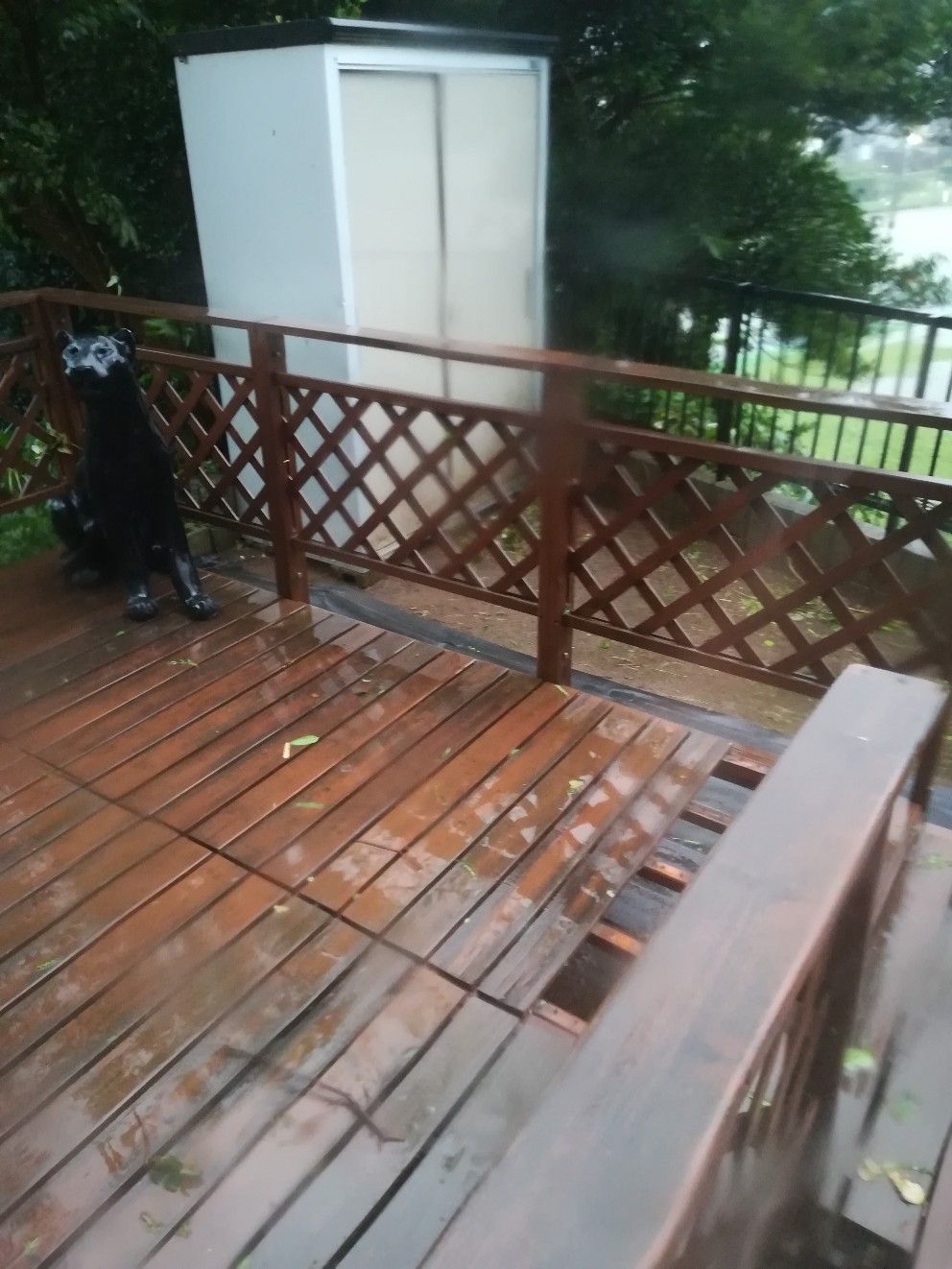 夜中、我が県を直撃した台風15号。 雨と風の音がひどくて、寝た気がしないまま朝に。 雨戸のない窓から庭を見てみたら、 ウッドデッキの板、一枚剥がれてた…。 だいぶ年数も経ってるし、しょうがないか、と思える程度。 そして、一番の我が家の被害は、フレッツ光がヤラれたこと。 テレビはつかない、固定電話は通じない、ネットもアウト。 スマホは大丈夫だから、情報は入手できるし、 ガラケーも健在だから、電話OKだし、ワンセグでテレビも。 停電してるわけじゃないので、ビデオを見ることはできる。 なのに、何なの、この不自由感。 県内には、停電や断水している地域もあるのに、 台風一過の暑さもエアコンでしのげ、食事もお風呂も問題ないんだから、 よかった、と思わなくちゃ、と自分に言い聞かせるものの、 なかなかつながらないフレッツ光の故障センターに、イライラ。 そんな状況だったので、ブログを更新する気力、なし。 一日お休みしちゃいました。すいません。 この不自由さが解消されるのは、いつ?
