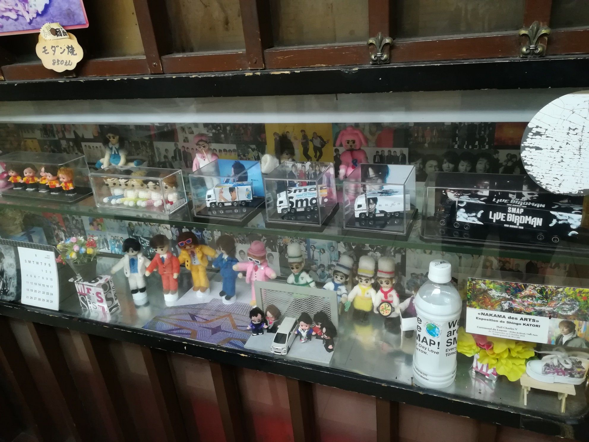 店内は勿論、外のショーケースの中も、SMAPグッズでいっぱい。
