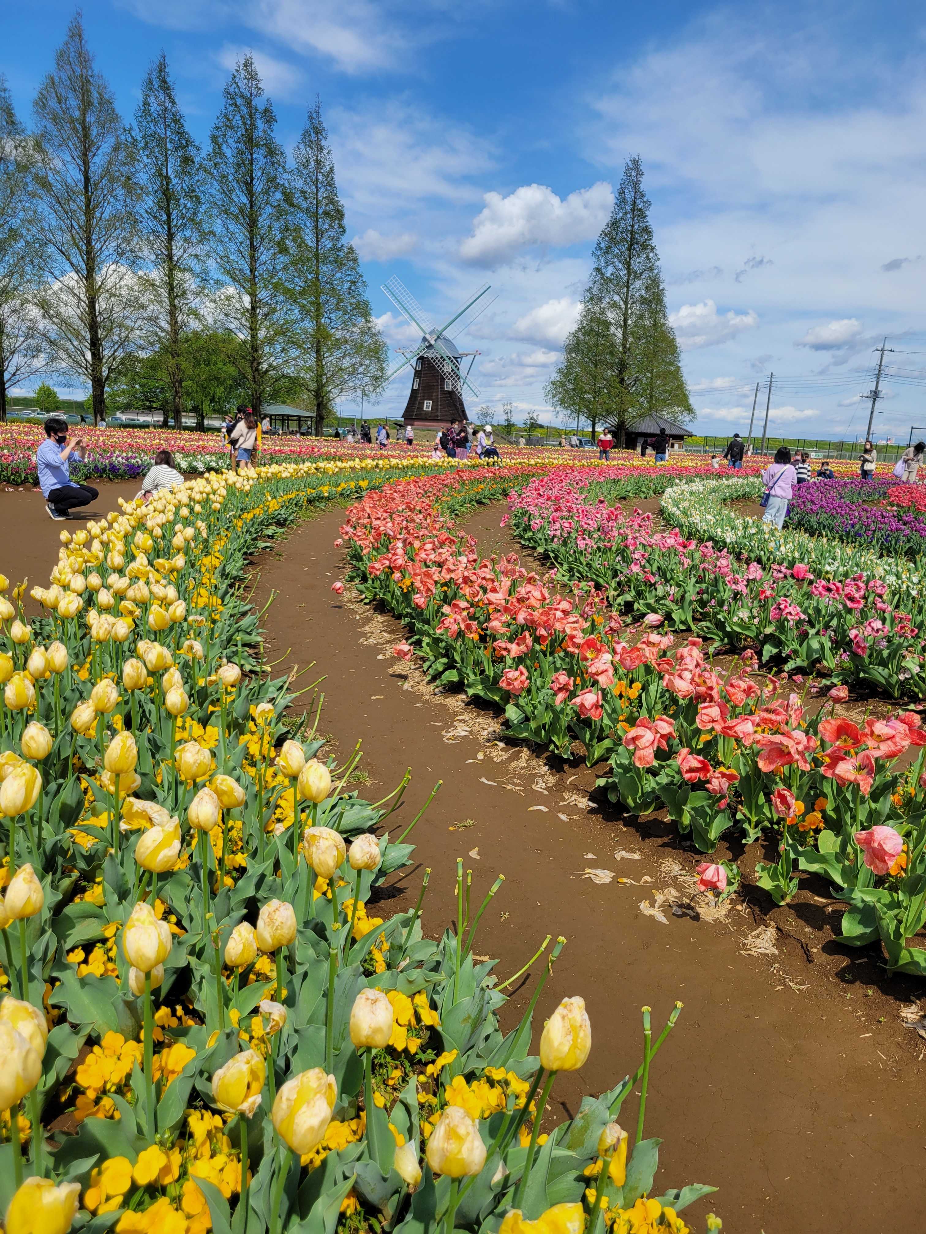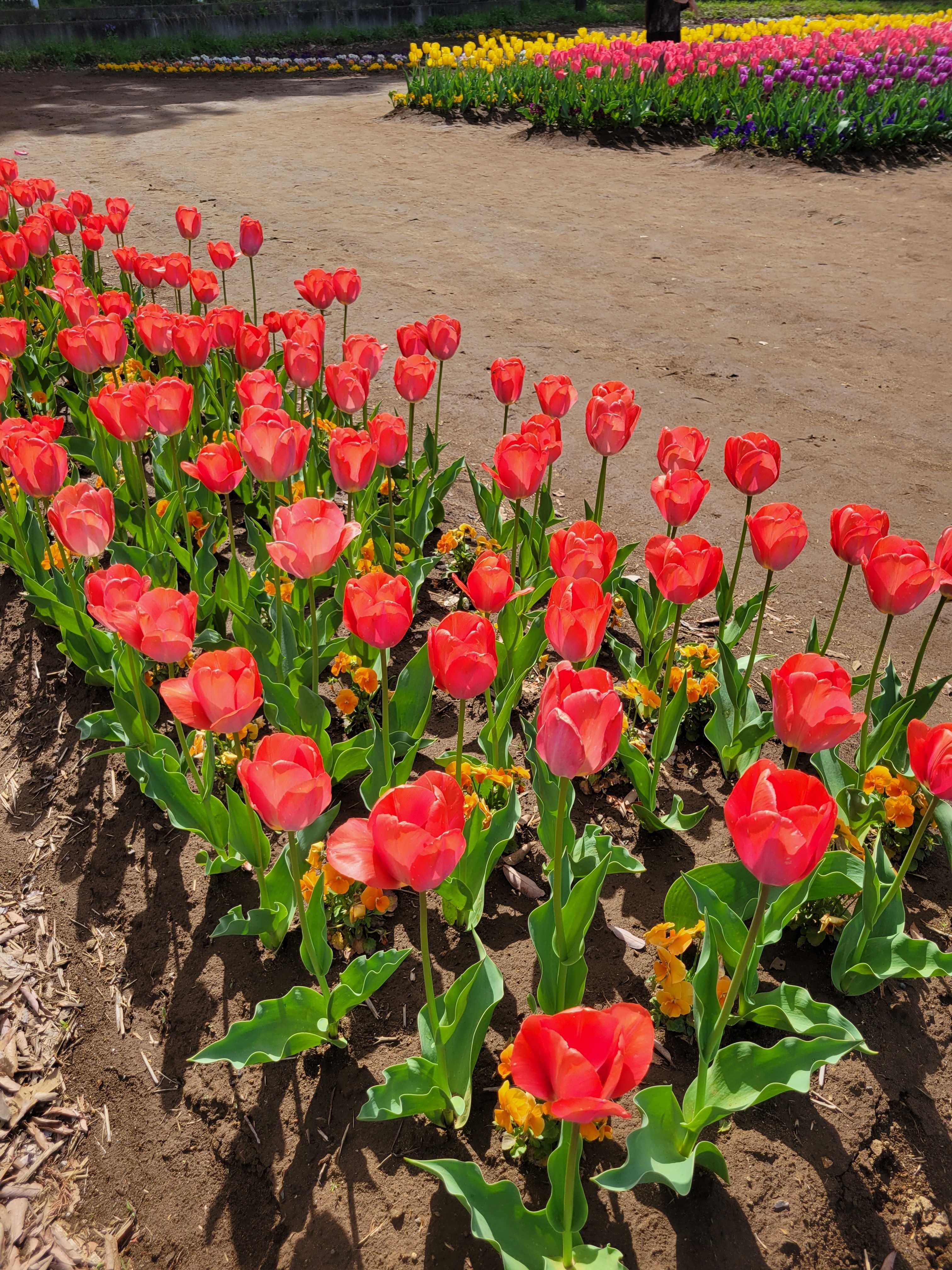 折り返しにした公園のチューリップは、