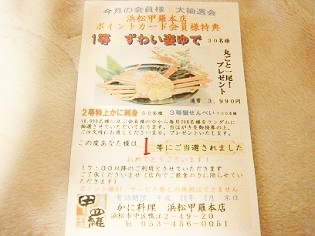 豆まきもせず、恵方巻きも食べずにいたのですが・・・なぜだか「福」が舞い込んできましたかに料理が大好きで「甲羅」さんというお店の会員にまでなってしまったわたしですが、どうやら最近、会員を対象に大抽選会をやってくださったようなんです。先月の会員数は約10000名。1等の「ずわい姿ゆで」が30名、2等の「特上かに刺身」が50名、3等の「蟹せんべい」が120名に当たるのですが、なんとわたし、1等が当たったみたいです~(嬉)ちょっとだけならミルクココアにもお土産する事が出来るので、また近いうちに食べに行こうと思いますv 甲羅さんありがとうなのvプレゼント企画「ミルクココアのドキドキ★バレンタイン」開催中●里親さん募集●【とらのすけくん】茶トラ♂・1歳半位 お問い合わせはコチラお友達のきのぴた2号さんが「うずら君」&「もぐら君」の里親さんを募集中です!●里親さんになっていただけませんか?●里親希望の方をご紹介いただけませんか?●リンクフリーですので、募集ページをリンクしていただけませんか?(バナーは2種類あります。)詳しい募集要項&お問い合わせはさゆりんす様までお願い致します。「ありがとうなの~byミルクココアに、応援クリックお願いします♪」 ご協力ありがとうございます。ポチッ!ポチッ!プニッ!と3つクリックしていただけると喜びます。●アフィリエイトde猫ボランティア● 更新しました(2/3)アフィリエイトの獲得ポイントを使って、猫缶や猫砂を【Go!Cats(ゴーキャッツ)さん】へ寄付させていただいております。コチラから楽天市場内の各ショップでお買い物をしていただくだけで、余分なお金は一切かかりません。ご安心ください。猫達のために、温かいご支援・ご協力をよろしくお願い致します。