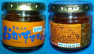 紳助プロデュース『夢来人のおかずですよ』をご存知でしょうか?TBS『紳助社長のプロデュース大作戦!』から生まれた、沖縄・宮古島の民宿「夢来人(むらびと)」。お笑いのレギュラーと選ばれたヤル気と体力のある素人達で宮古島で宿の管理と経営。紳助社長の命令により「食べるラー油」人気を抜く程の商品かつ島独自のものを使った何かを考案し、製造作成に至った逸品(一品)。考案に至り、お金にガメツい坂東英二もプロデュースのアドバイス。色々経営しているだけあり、かなり役立つアドバイス。観てる方も勉強になった紳助社長が試食をし、おいしいので商品化が決定。作るものが決まってネーミング。話し合いの中、紳助が「ごはんですよ!」に対抗し「おかずですよ!」と名付ける。もちろん、作ってもらえる企業?も全て自分達で開拓。と、長い行程があり、ようやく1/26に成城石井、高島屋、他で全国販売。成城石井では、朝9:30に整理券を配り、10時から販売。平日にもかかわらず午前中には完売。当然、通勤組の私に買えるはずもなく、「次回土曜日の再販を待とう!」と友人と話をしていたら、1/27高島屋にあったからと、友人が私の分もGETしてくれたo(^▽^)o土曜日の朝早くに並ばなくて良かった~(^O^)材料は沖縄産、宮古牛100%、パイナップル、らっきょう、唐辛子と調味料多々で添加物一斉なしという点がよい。 その分、賞味期限も短い。味は「食べるラー油」よりは辛味が控えめ、女性向けにかゴマの味がしっかり。ご飯のお供やラーメンにも良い。ちょっと汁気が多い。友人は甘いと言っていた。しかし、空輸なのか船便なのかはだが120g 840円は庶民にはちと高いかなぁ~…。■ 購入可能場所・島屋 全20店舗・成城石井 全77店舗・那覇空港・宮古空港知ってた方、このブログで知った方、再販は1/29(土)ですよ~ちなみに、平日に並ばれた方は1時間前から並び始めたそう。明日は土曜日なので購入予定の方はお早めに並ばれる事をオススメします。並ぶと1人最高5個まで購入できます。ネットだと3個までみたいですね。って、決してまわしもんではありませんから(*^-^)b在庫確保のため、“おかずですよ”3個セット販売開始!! 次回、明日29日昼12時販売予定!島田...価格:4,800円(税込、送料別) TV『紳○社長のプロデュース大作戦!』から生まれた食べるラー油“ごはんの友”次回、明日29日...価格:1,750円(税込、送料別)