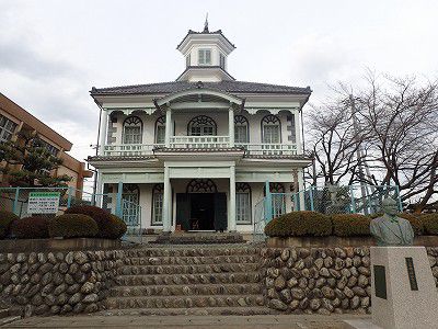 富士川町立穂積小学校校内にある「富士川町民族資料館」【旧舂米(つきよね)学校】登録有形文化財 第19-36号 に行ってきました。 明治9年(1876年)に開校 実業家・政治家の舂米に産まれた小林小太郎が土地と私財を寄附し、舂米学校が建設されました。山梨県令(知事)・藤村紫郎が奨励したコロニアル風建物で藤村式建築と呼ばれ、明治時代に一世風靡したそうです。3Fにに六角形の部屋を設け、天井から太鼓を吊るし、授業のはじめとおわりを知らせていたそうです。なので、【太鼓堂】と呼ばれています。 現在は危ないので吊るしていません。3Fへの急こう配の階段 ガラス窓は当時のまま(輸入物)で、気泡がはいっています。 窓も洋風、和風と互い違いにはめられています。 左が洋風、右手が和風。枠の形が違います。2Fの資料館では「青い目の人形」が展示されており 昭和2年(1927年)日米友好の証として全国の小学校へアメリカのギューリック牧師と全米の子供たちから贈られました。日本の子供達も日本人形をアメリカ各州へ贈ったそうです。実際には青い目だけではなく茶色の目、黒い目の人形もあったそうですが当時流行った「青い眼の人形」という童謡?に因み全ての海外からの人形が「青い目の人形」と言われたようです。偶然にも開館日にあたる水曜日だったので内部見学できラッキーでした。入 館 料:無料開館時間:午前9時~午後4時開 館 日:毎週日・水曜日、第2土曜日この学校校舎を模した「道の駅富士川」へ立ち寄る。 展望ウッドデッキテラスから 展望棟の上には民俗資料館同様、太鼓堂を設けていました。 窓も洋と和の形です。こちらでは実際に叩くこともできます。「道の駅富士川」は2014年に出来たようなのですが、まだ一部工事中で関係者が色んな説明を受けていたり、内装業者が出入りしていたりと忙しそうでした。多目的広場には「富士川龍門」というドラゴンの塔?がありました。 下に開いている穴に入れるようですが、何もなくがらんどうだった。 ・・・先に「富士川町民族資料館」に立ち寄って説明を聞いたお陰で「道の駅富士川」の展望棟の上になぜ太鼓があるのかがよくわかり良かったです。