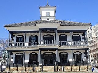 甲府で建物といえば、藤村式建築。先日「旧舂米学校校舎」へ見学に行った際に甲府市駅前にも藤村式建築があると知り、早速訪問。【旧睦沢学校校舎】重文 明治8年(1875年)現:甲斐市(旧:巨摩郡睦沢村)に建築された擬洋風建築。 白壁はもちろん漆喰塗ですが、サイドや窓枠などのの黒い部分も黒い漆喰です。 塔屋には登れませんでしたが、舂米学校校舎同様に太鼓があったようです。こんな重文が移築とはいえ、駅前にある事がとても不思議でした。駅近だと巡りやすくていいなぁ~。ついでに駅近にあるワイン藏やジュエリーなどのあるお土産街道的な「甲州夢小路」をぶらり。 高い塔は「時の鐘」(復元)です。江戸時代、昼夜を問わず2時間ごとに1日12回鐘楼の鐘で時を知らせました。 とても雰囲気のあるお土産屋さんが並ぶ小路が気に入りました。帰りの特急列車の指定時間まで、まだ1時間余りもあるので武田信玄由来の地ならではの「武田信玄公像」 厳しい顔です。甲府の街は京都の様に碁盤の目のように区画整備された街並みなので、巡りやすい。「武田通り」 駅からこの武田通りを突き当りまで行くと「武田神社」に行ける。バスの本数が少なく、タイミングを外してしまったので ひたすら歩く。地図で見るとすごく遠いイメージなのですが、歩いても15分~20分と以外に近かった。半袖に着替えたいぐらい暑いです。(~_~;)「武田神社」 「拝殿」 鳥居前には「右近乃橘」「左近乃櫻」があり、武田氏館跡(躑躅ヶ崎館跡)となってました。 御本殿から見て右、左となっている。という事に今気づきました。境内には「信玄公御使用井戸」 「甲陽武能殿」 立派な能殿です。「武田神社大手門」(旧大手門) 大手門前には厩跡や大手三日月堀、大手石塁、などが発掘調査により発見されており、「大手門東史跡公園」となってました。堪能しました。あとはゆっくりお土産を買って帰るのみかな。